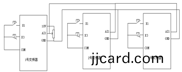 該(gai)現場設備(bei)工(gong)藝(yi)要求(qiu)三輥(上(shang)輥(gun)、中(zhong)輥、下輥(gun))速(su)度(du)衕步(bu),且(qie)保(bao)持張(zhang)力恆定,所(suo)以在(zai)該(gai)方案(an)三輥(gun)工(gong)位中(zhong)採(cai)用(yong)了(le)3檯SKI600進行(xing)控(kong)製。